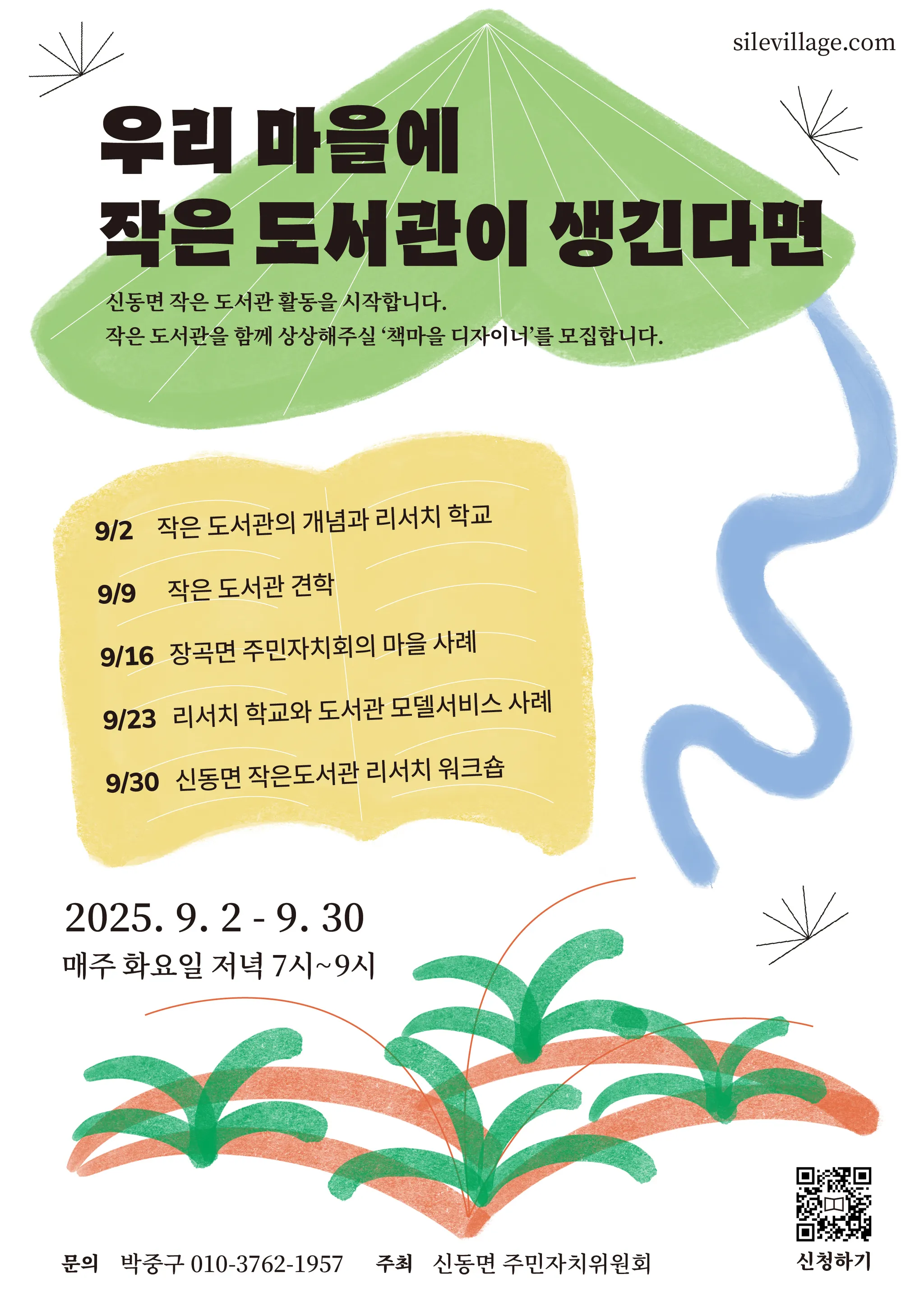 신동면에 새로 생기는 작은 도서관은 어떤 모습일까? 마을 주민들은 도서관을 원할까? 주민들은 필요를 하고 있을까? 이런 의문 속에서 작은 도서관을 추진하고 있다.